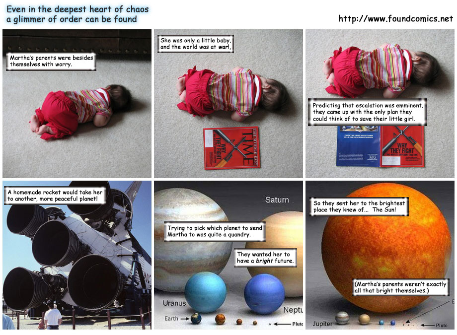 This comic was created from photos generated by the internet at random. The photos used for this comic came from: