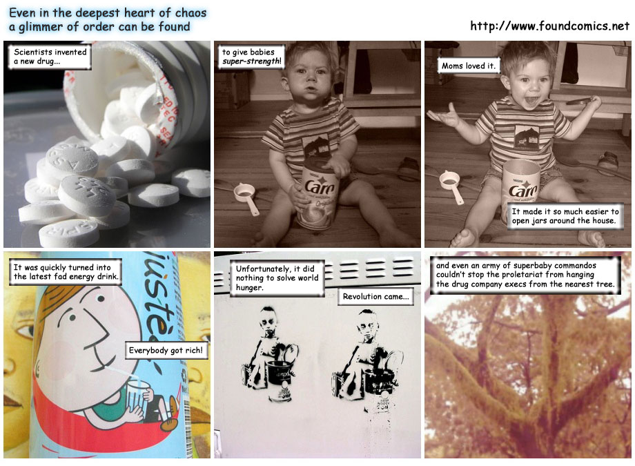 This comic was created from photos generated by the internet at random. The photos used for this comic came from: