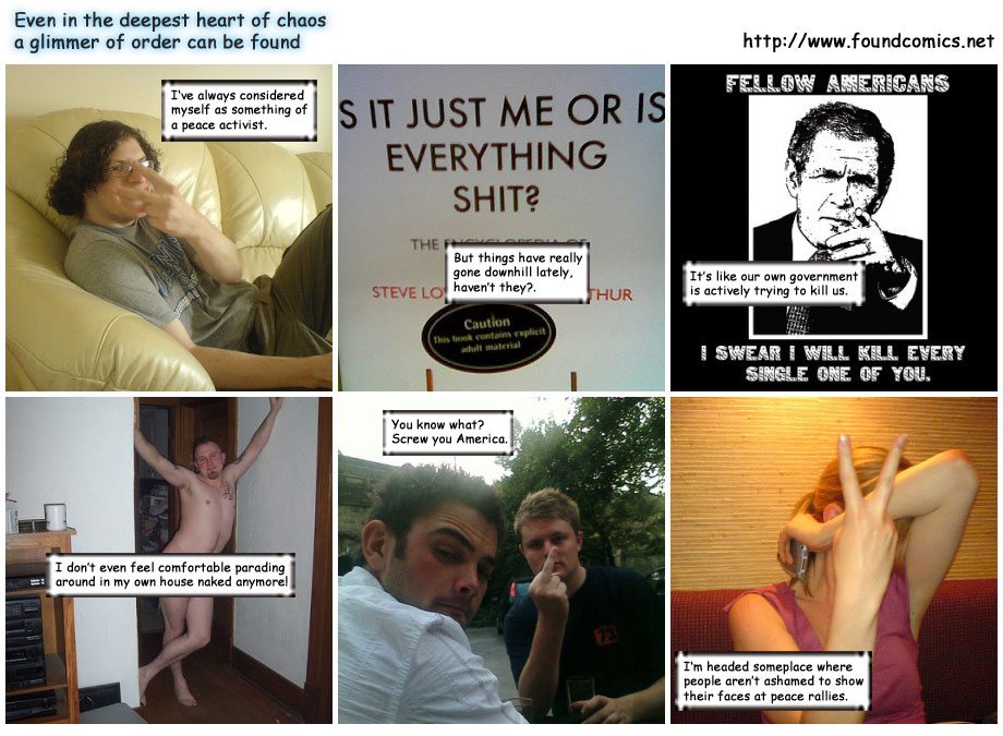 This comic was created from photos generated by the internet at random. The photos used for this comic came from: