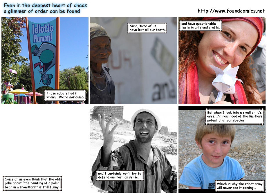 This comic was created from photos generated by the internet at random. The photos used for this comic came from: