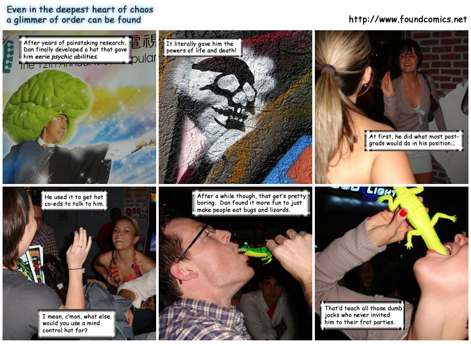 This comic was created from photos generated by the internet at random. The photos used for this comic came from:
