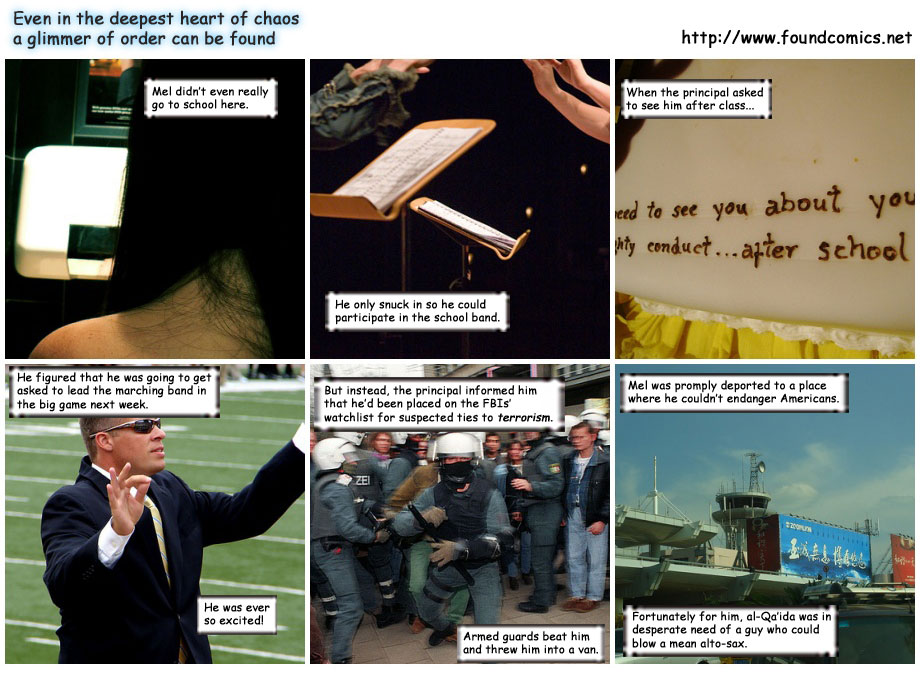 This comic was created from photos generated by the internet at random. The photos used for this comic came from: