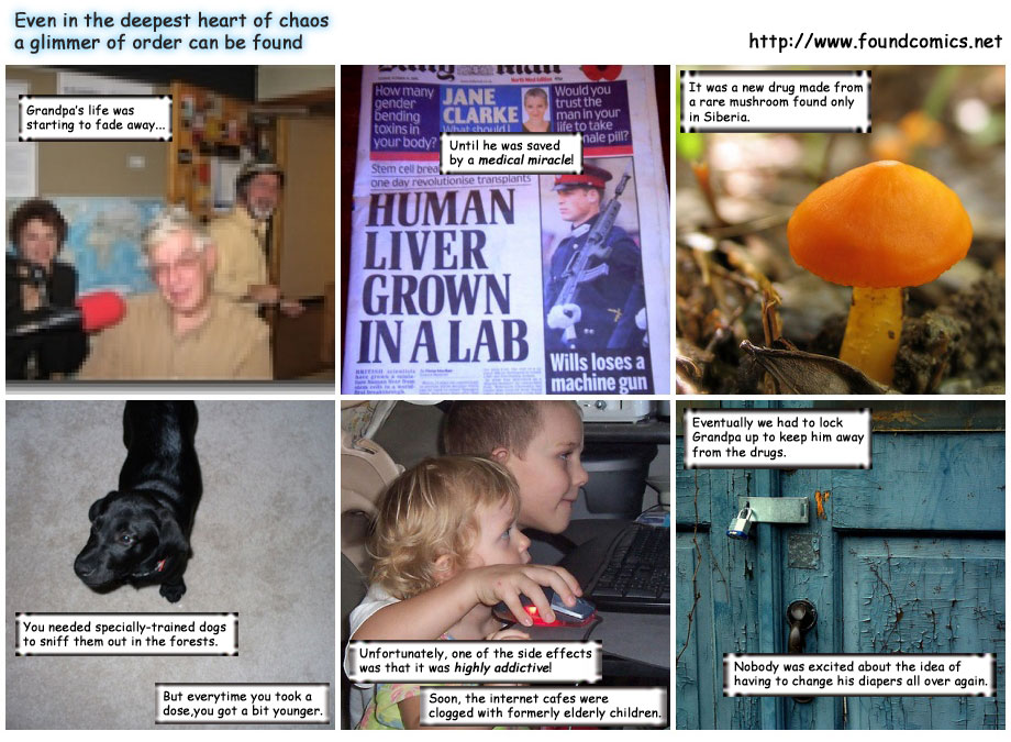 This comic was created from photos generated by the internet at random. The photos used for this comic came from: