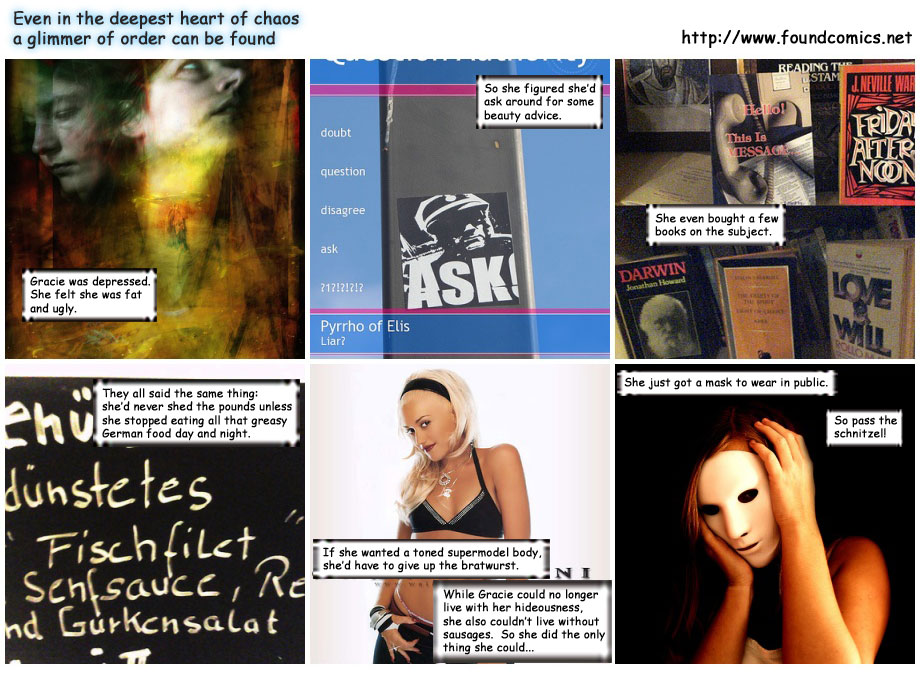 This comic was created from photos generated by the internet at random. The photos used for this comic came from: