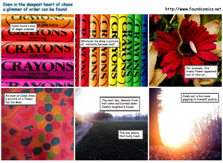 This comic was created from photos generated by the internet at random. The photos used for this comic came from: