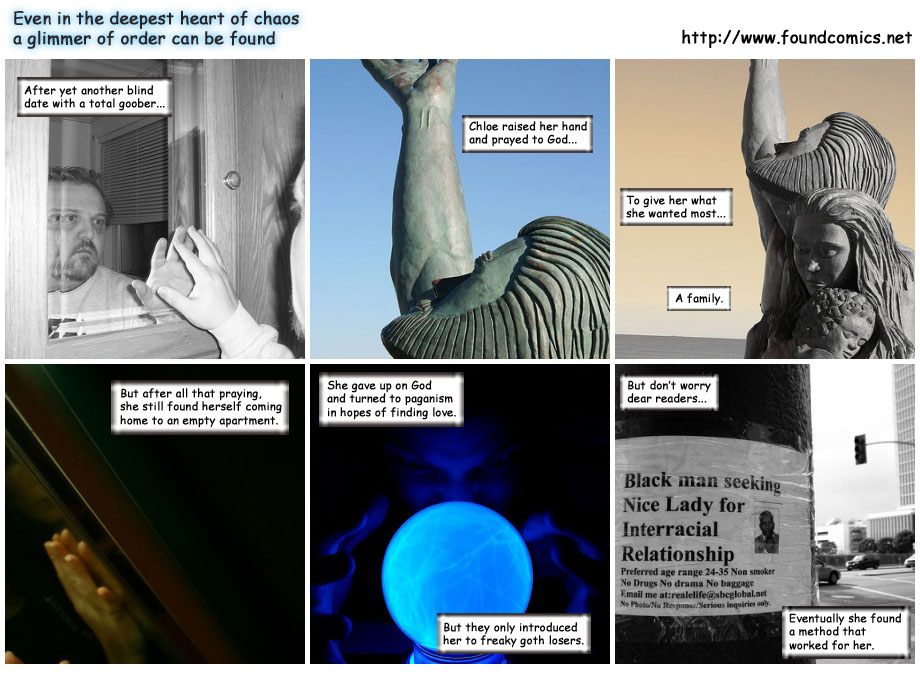 This comic was created from photos generated by the internet at random. The photos used for this comic came from:
